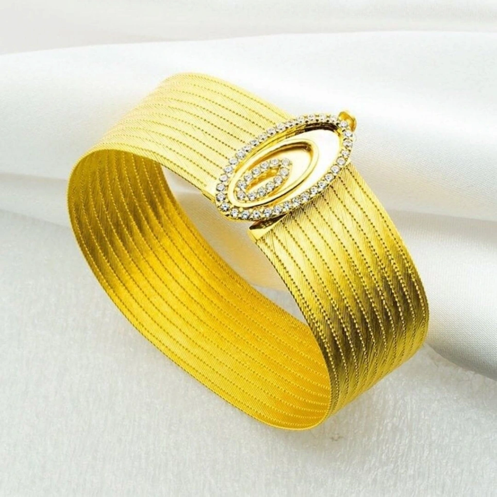 Evla Kuyumculuk'un 11 Sıralı 14 Ayar Altın Trabzon Hasır Bilezik, göz alıcı bir tasarıma sahip olan bir mücevherdir.Bilezik, 14 ayar altın kullanılarak üretilmiştir. 14 ayar altın, altının saflık oranını ifade eder ve mücevherlerde sıklıkla tercih edilen bir altın türüdür. Bu bilezikte kullanılan altın, dayanıklı ve parlak bir görünüm sağlar.Trabzon hasır deseni, ince altın tellerinin ustalıkla bir araya getirilerek örülmesiyle oluşturulmuştur. Bu örgü deseni, bileziğe zarif bir dokunuş ve geleneksel bir hava katar. Trabzon hasır deseni, Türk el sanatlarından biridir ve bu bilezikte başarıyla kullanılmıştır.