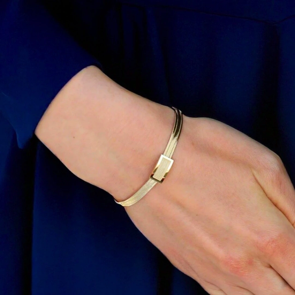 Evla Kuyumculuk'un özel koleksiyonlarından biridir . Altın Bileklik, zarafet ve geleneksel Türk motiflerinin mükemmel bir birleşimidir. Yüksek kaliteli altın malzeme kullanılarak özenle üretilmiştir . Göz alıcı tasarımıyla dikkat çeker.