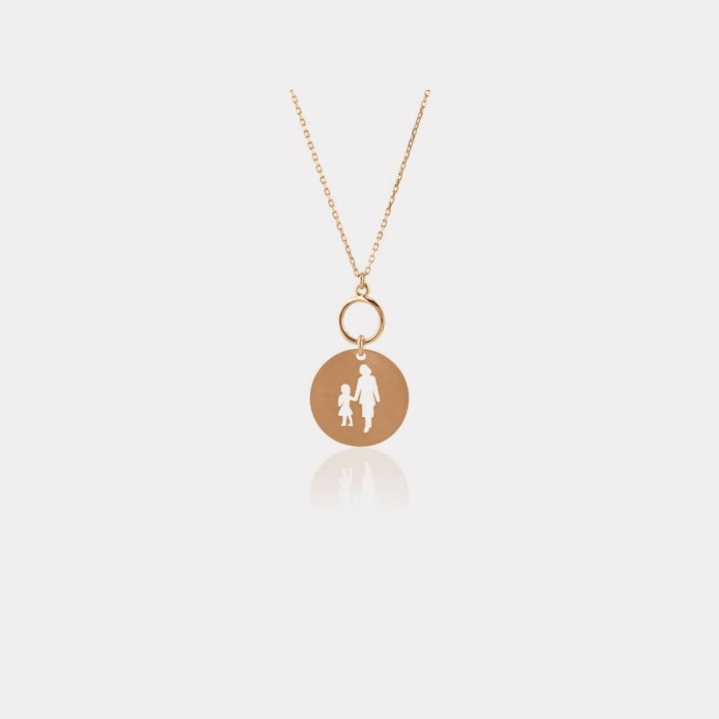 Kolyenin tasarımı zarif ve duygusal bir dokunuşa sahiptir. Anne ve kız figürleri, altın zincirle birleştirilmiş olarak bir araya gelir ve boynunuzda zarif bir şekilde durur. Bu kolye, günlük hayatta veya özel etkinliklerde anneye ve kızına özel bir bağı ifade etmek için mükemmel bir seçenektir.