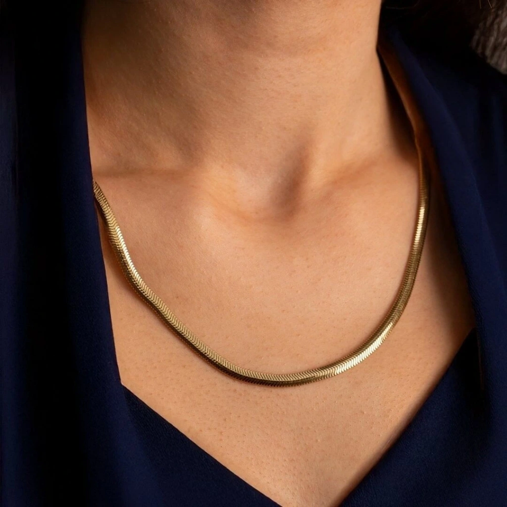 zarif ve dayanıklı yapısıyla öne çıkan, klasik bir takıdır. 15,75 gram ağırlığındaki bu zincir, balık sırtı deseni ile hem şık hem de dikkat çekici bir görünüme sahiptir. Yassı ve parlak halkalarıyla tasarlanan zincir, ışığı mükemmel bir şekilde yansıtarak, altının doğal parlaklığını ön plana çıkarır.