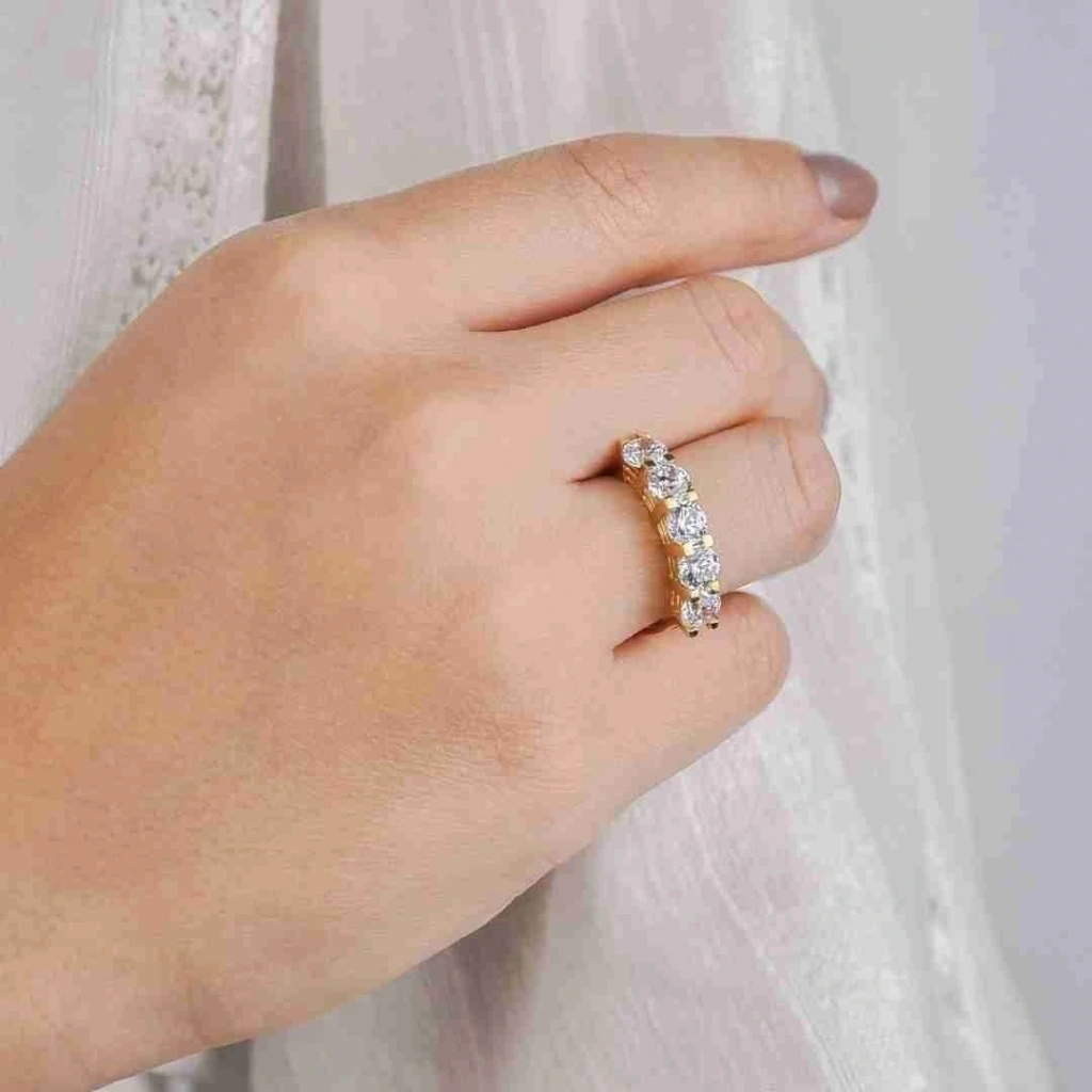 Taşlar: Yüzükte kullanılan taşlar, genellikle elmas veya zirkon gibi değerli taşlardır. Taşların kesimleri ve berraklıkları, yüzüğün ışığı güzel bir şekilde yansıtmasını sağlar.