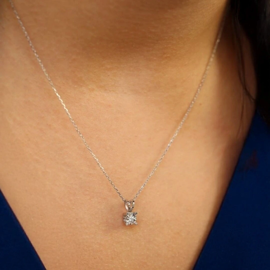 Evla Kuyumculuk, şıklığı ve zarafeti bir araya getiren 14 Ayar Altın Beyaz Tektaş Kolye ile müşterilerine eşsiz bir takı deneyimi sunmaktadır.
