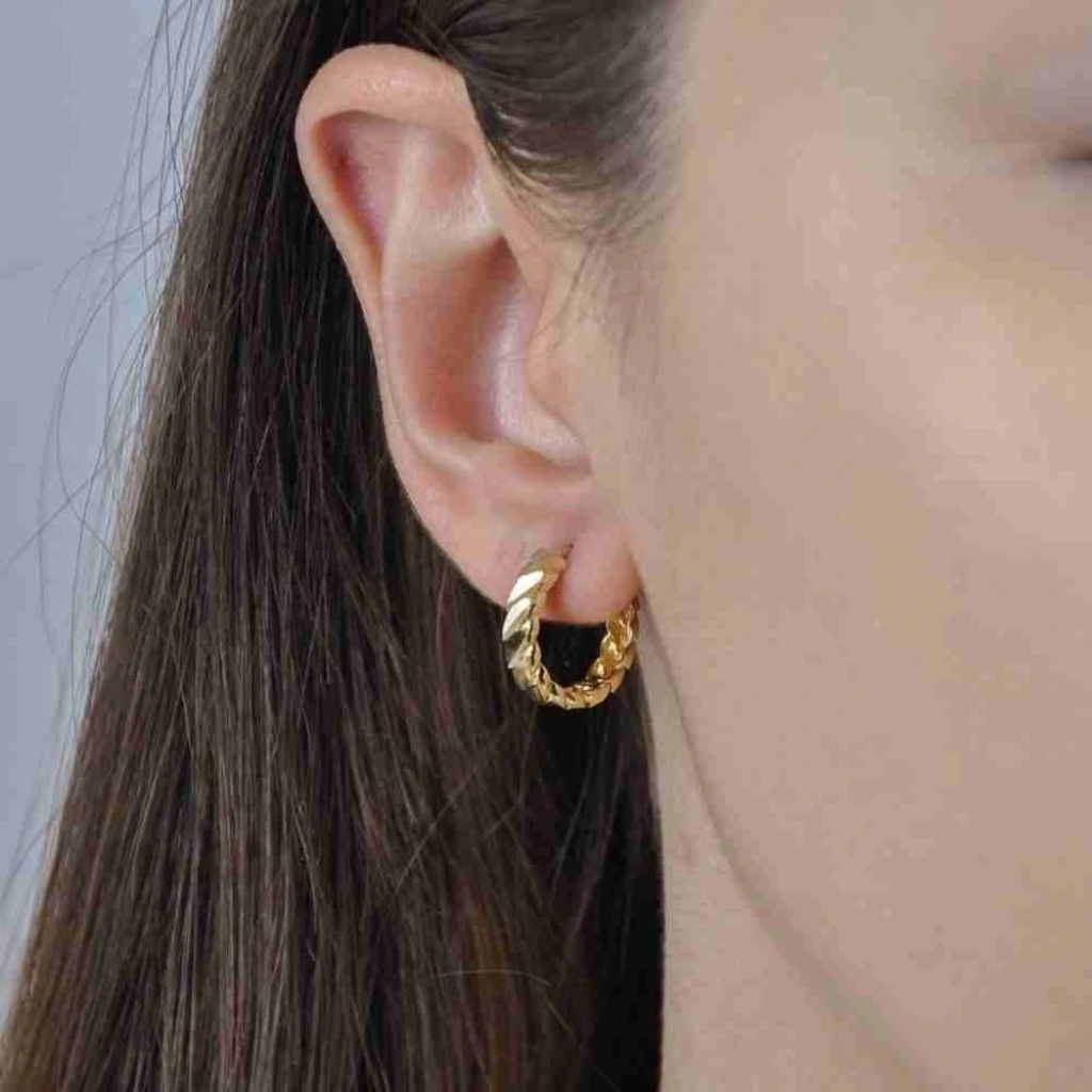 Evla Kuyumculuk'un zarif ve şık tasarımlarından biri olan 14 Ayar Altın Burmalı Halka Küpe, benzersiz bir görünüm sunar. Bu özel küpe, 14 ayar altın malzemeden üretilmiştir ve göz alıcı burma detaylarıyla dikkat çeker. İnce işçilikle hazırlanan bu halka küpe, zarif bir şekilde kulağınıza oturur ve her türlü kıyafetinizle mükemmel bir uyum sağlar. 2,58 gram ağırlığındaki bu küpe, hafif ve rahattır, böylece gün boyu kullanabilirsiniz.