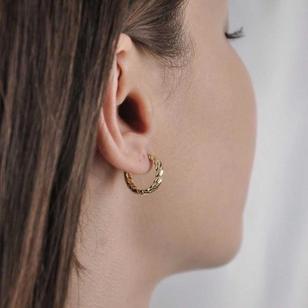 14 Ayar Altın Burmalı Halka Küpe 2,58 Gram: