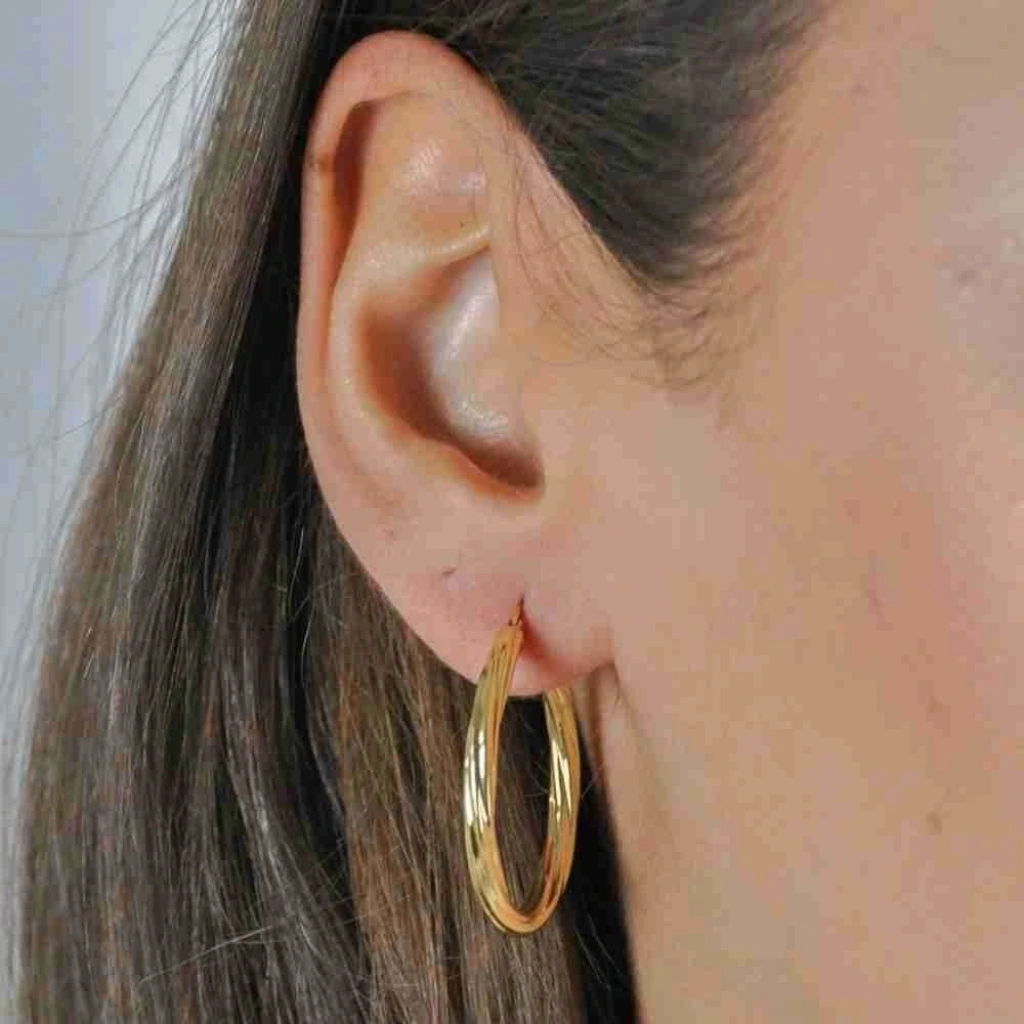14 Ayar Altın Büyük Sarmal Halka Küpe 2,75 Gram:Evla Kuyumculuk'un eşsiz ve dikkat çekici tasarımlarından biri olan14 Ayar Altın Büyük Sarmal Halka Küpe,Şıklığı ve zarafetiyle göz kamaştırır. Bu özel küpe, 14 ayar altın malzemeden üretilmiştir ve benzersiz büyük sarmal detaylarıyla öne çıkar. İster özel bir etkinlikte ister günlük kullanımda olsun, bu halka küpe tarzınızı tamamlayacak ve size sofistike bir görünüm kazandıracak. 2,75 gram ağırlığındaki bu küpe hafif ve rahattır, böylece uzun saatler boyunca kullanabilirsiniz.