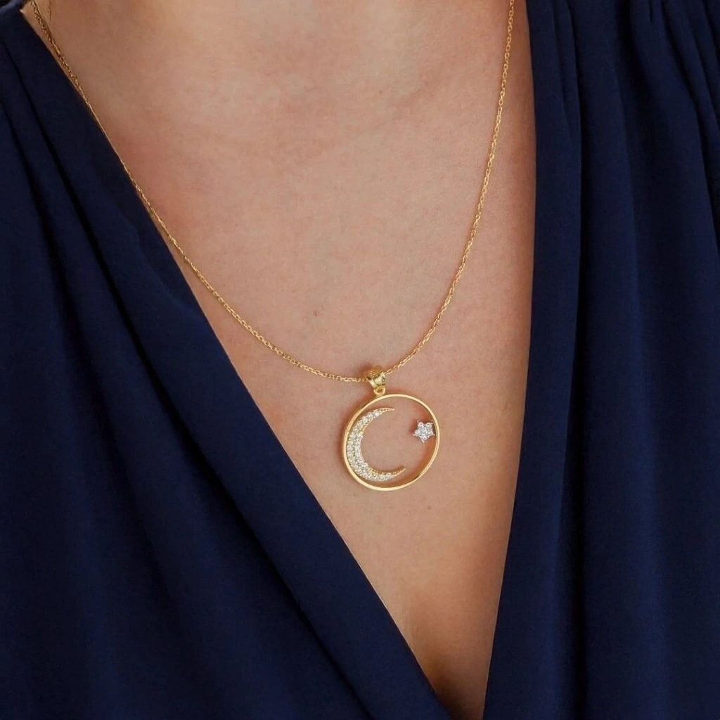 14 Ayar Altın Çerçeve Ayyıldız Kolye