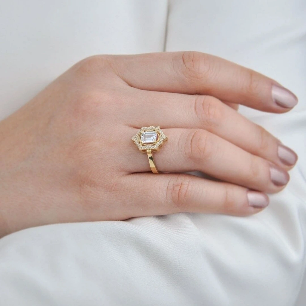 Bu 14 Ayar Altın Çerçeveli Baget Yüzük, zarif tasarımı ve göz alıcı taşları ile hem klasik hem de modern bir görünüm sunar. Hem kendinize hem de sevdiklerinize özel bir hediye olarak tercih edebileceğiniz mükemmel bir parça.
