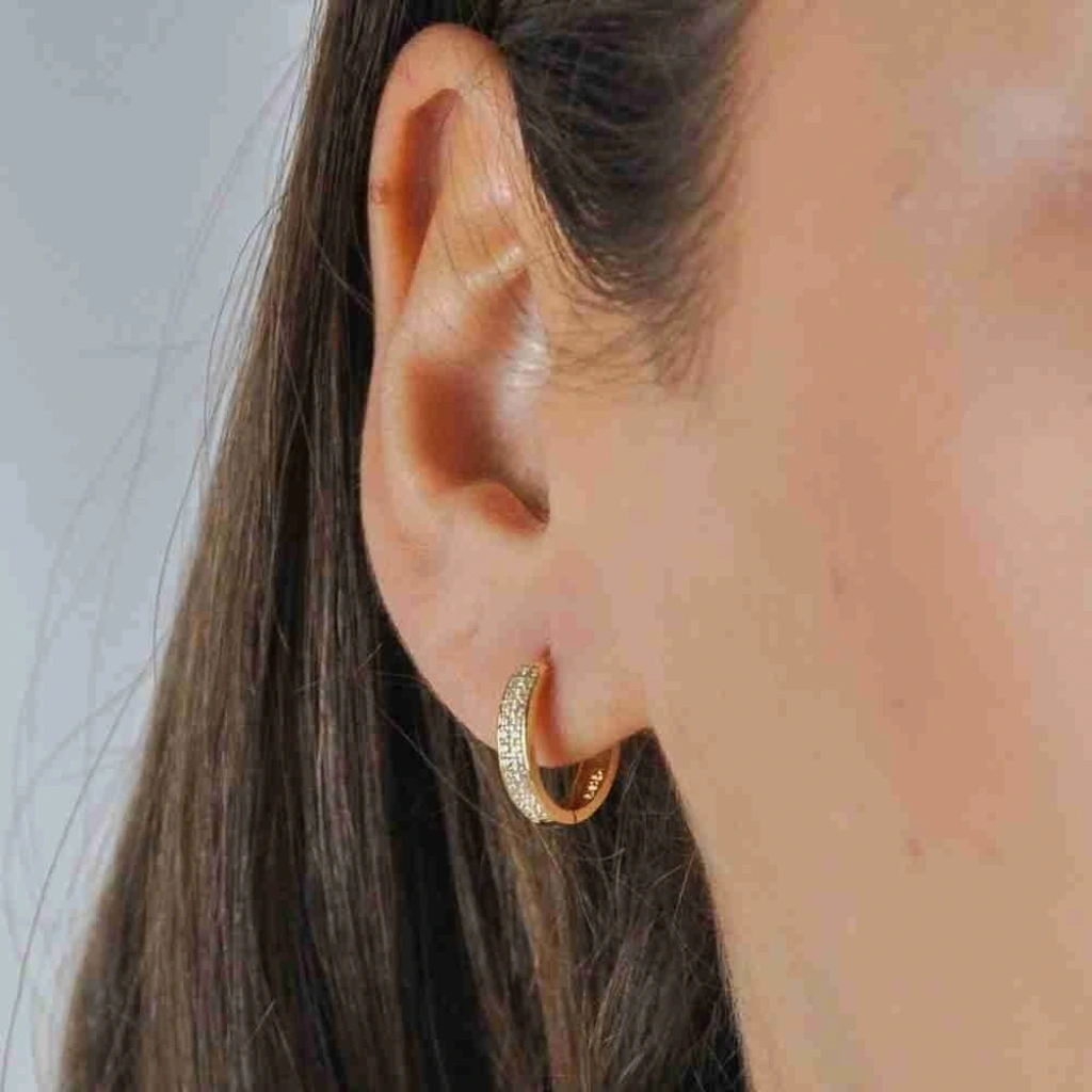 14 Ayar Altın Çift Sıra Taşlı Halka Küpe