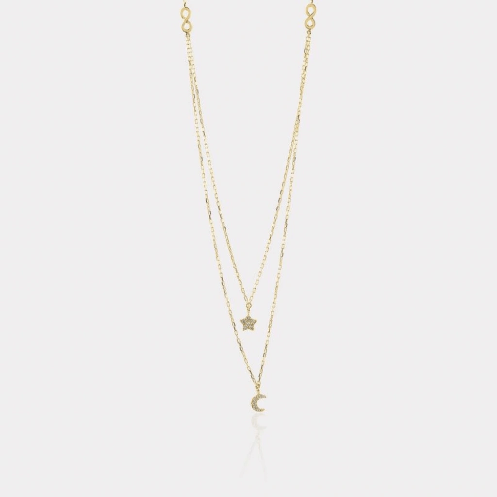 14 Ayar Altın Çiftli Ay Yıldız Kolye
