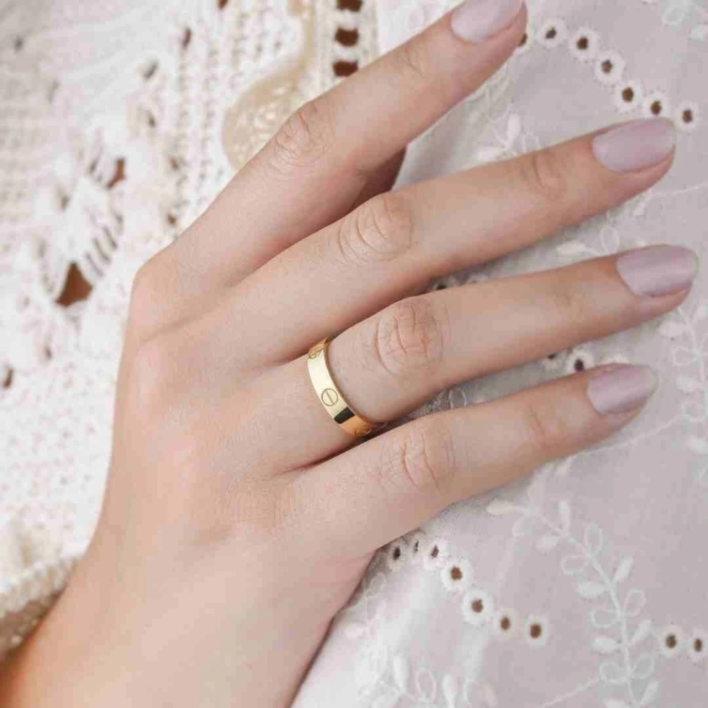 Bu 14 Ayar Altın Çivi Yüzük Alyans, minimalizm severler için mükemmel bir seçenek olup, her parmağa uyum sağlayacak zarif bir tasarıma sahiptir .