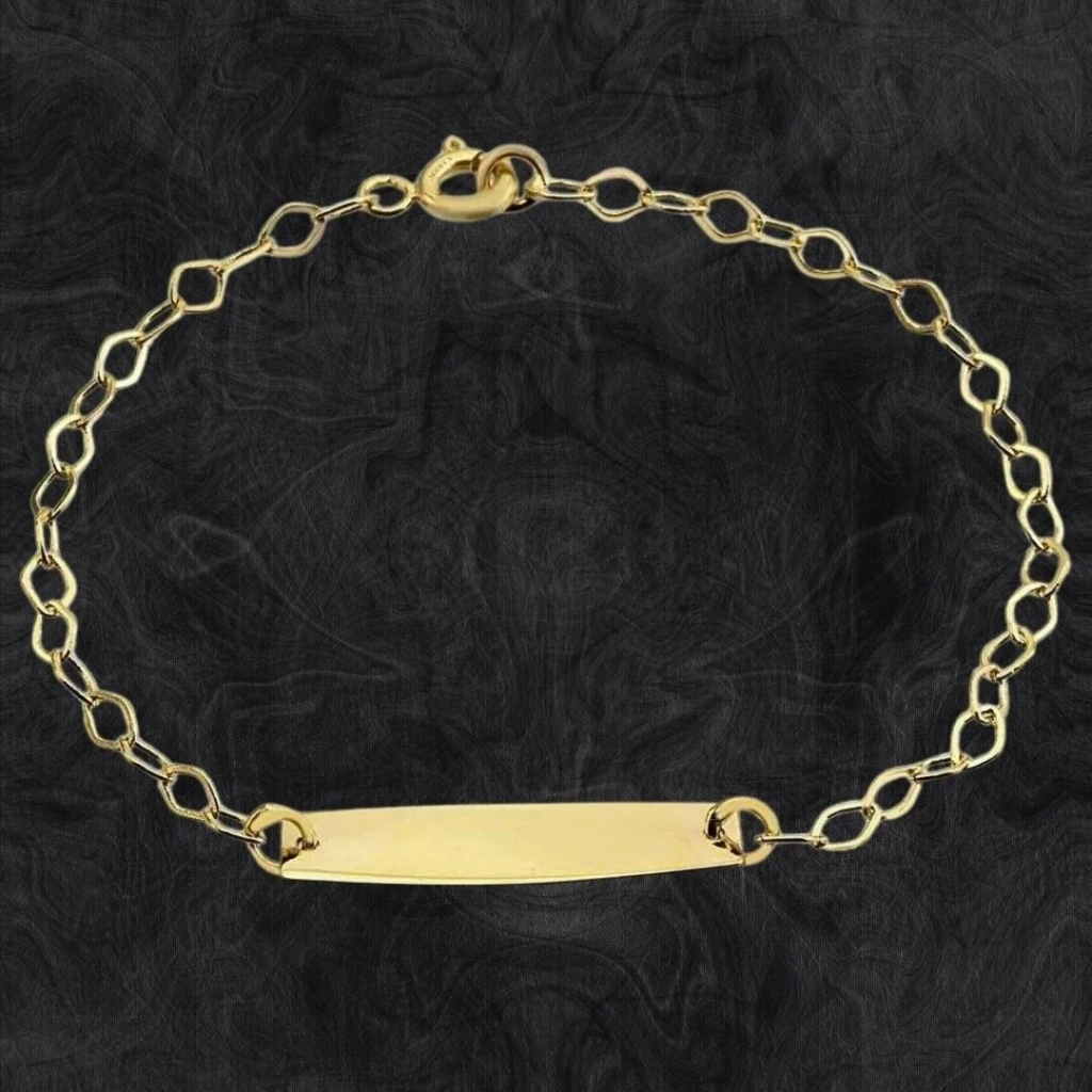 Evla Kuyumculuk’tan 14 Ayar Altın Çocuk Künyesi 1,39 Gram, çocuklarınızın bileğindeki yerini alacak şık ve modern bir tasarıma sahiptir. 14 ayar altın kullanılarak üretilen künye. Bu da onu daha dayanıklı ve parlak bir seçenek haline getirir.