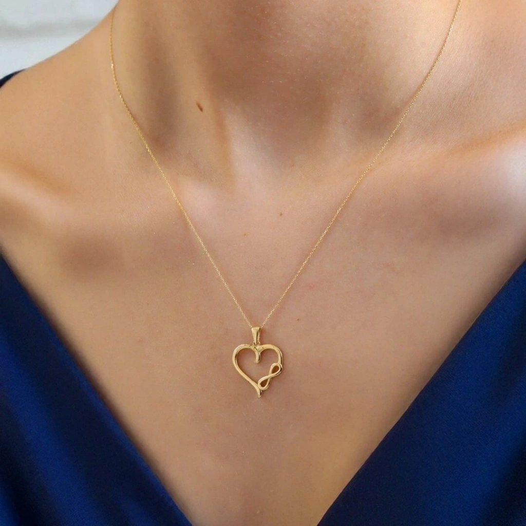 Evla Kuyumculuk, şıklığı ve anlamı bir araya getiren 14 Ayar Altın Dikey Sonsuzluk Kolye ile müşterilerine özel bir takı deneyimi sunmaktadır.