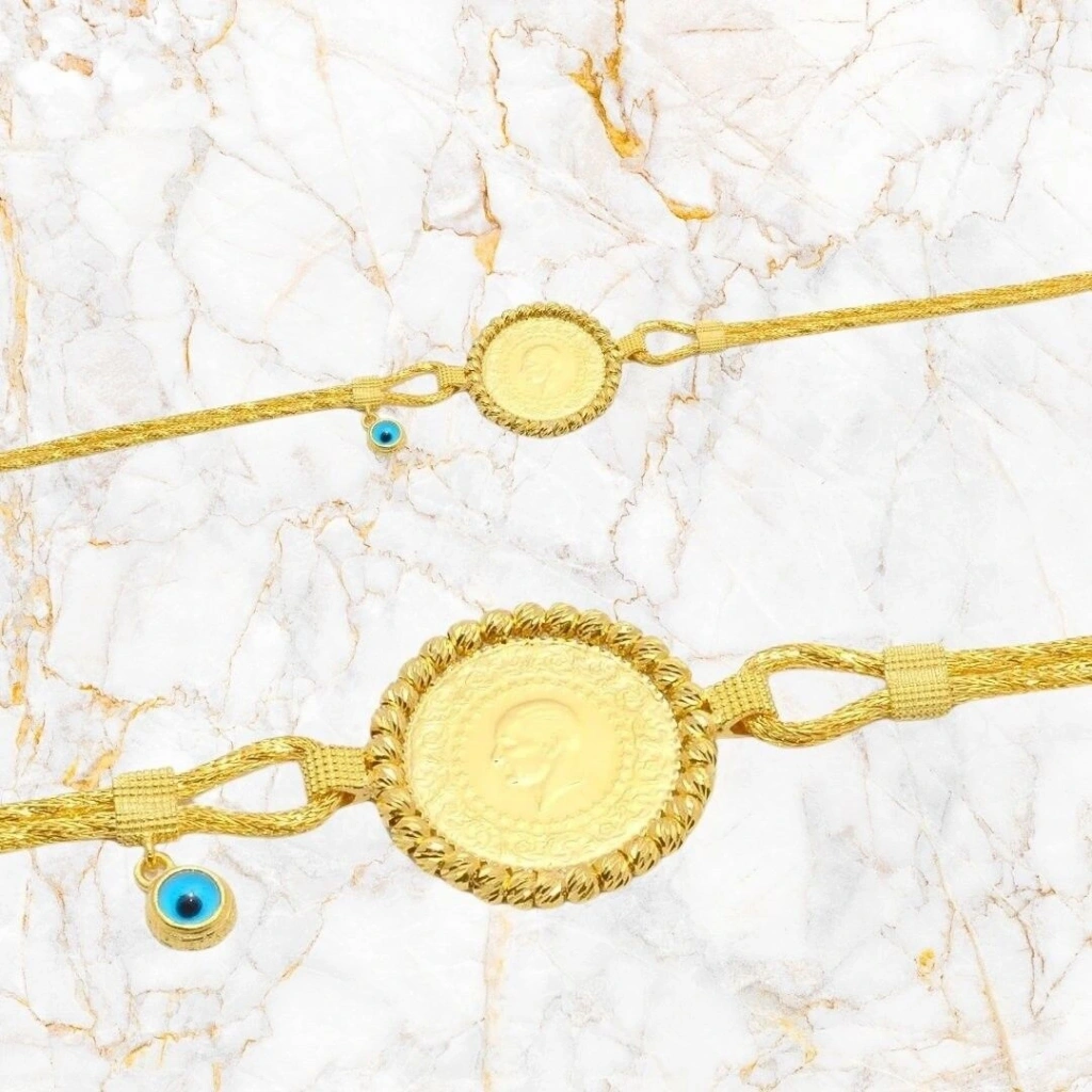 14 Ayar Altın Dorika Çift Sıra Çeyrekli Bileklik 8,21 GRam çeyrek dahildir.