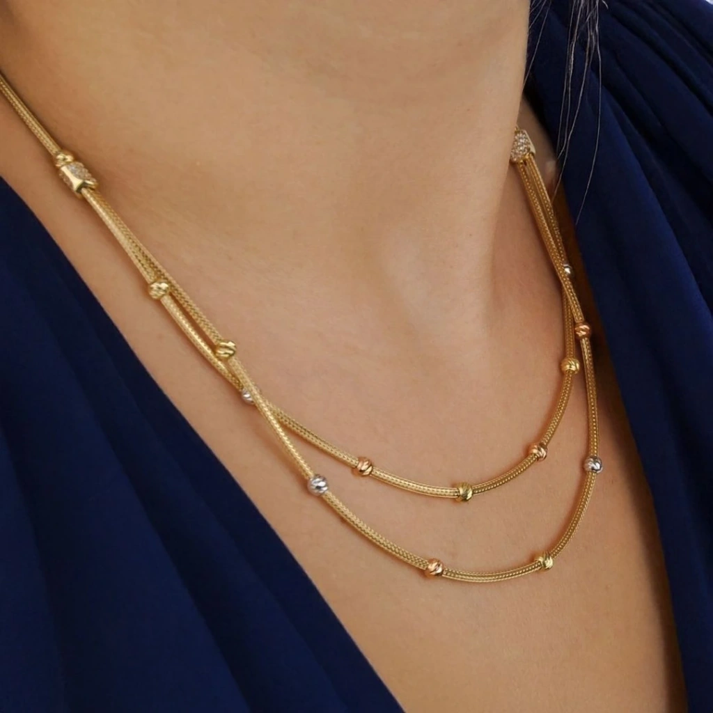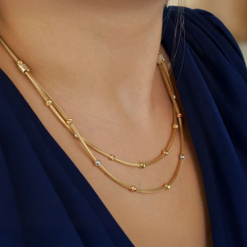 Evla Kuyumculuk 14 Ayar Altın Dorika İkili Sıra Sade Renk Kolye 9,69 Gram