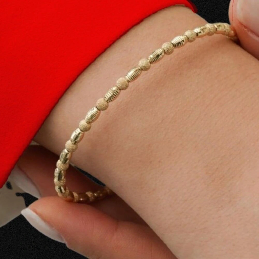 Bu 14 Ayar Altın Dorika Kelepçe, Evla Kuyumculuk tarafından özenle tasarlanmış ve üretilmiş bir mücevherat ürünüdür. Yüksek kaliteli malzemeler kullanılarak yapılmış ve şık tasarımıyla dikkat çeken bir bilekliktir. Bu altın bileklik, 14 ayar altın kullanılarak üretilmiştir ve toplamda 6,03 gram ağırlığındadır. Bilekliğin tasarımında kelepçe şekli kullanılarak özgün bir görünüm elde edilmiştir. Altın rengi, bilekliğin değerini ve zarafetini vurgular.
