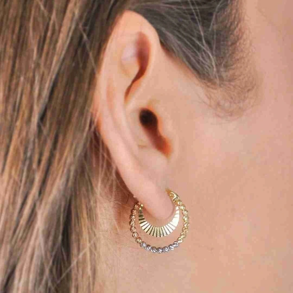 Evla Kuyumculuk'un özgün ve şık tasarımlarından biri olan14 Ayar Altın Dorika Küpe, zarafeti ve estetiği bir araya getiriyor. Bu özel küpe, 2,58 gram ağırlığındaki 14 ayar altınla özenle işlenmiştir. Küpenin dorika motifli tasarımı, göz alıcı bir görünüm sunarken, altının parlaklığı da dikkat çekici bir şekilde öne çıkar. Evla Kuyumculuk, bu küpeyi özgün bir stil ile tasarlamış ve her ayrıntısına özen göstermiştir.