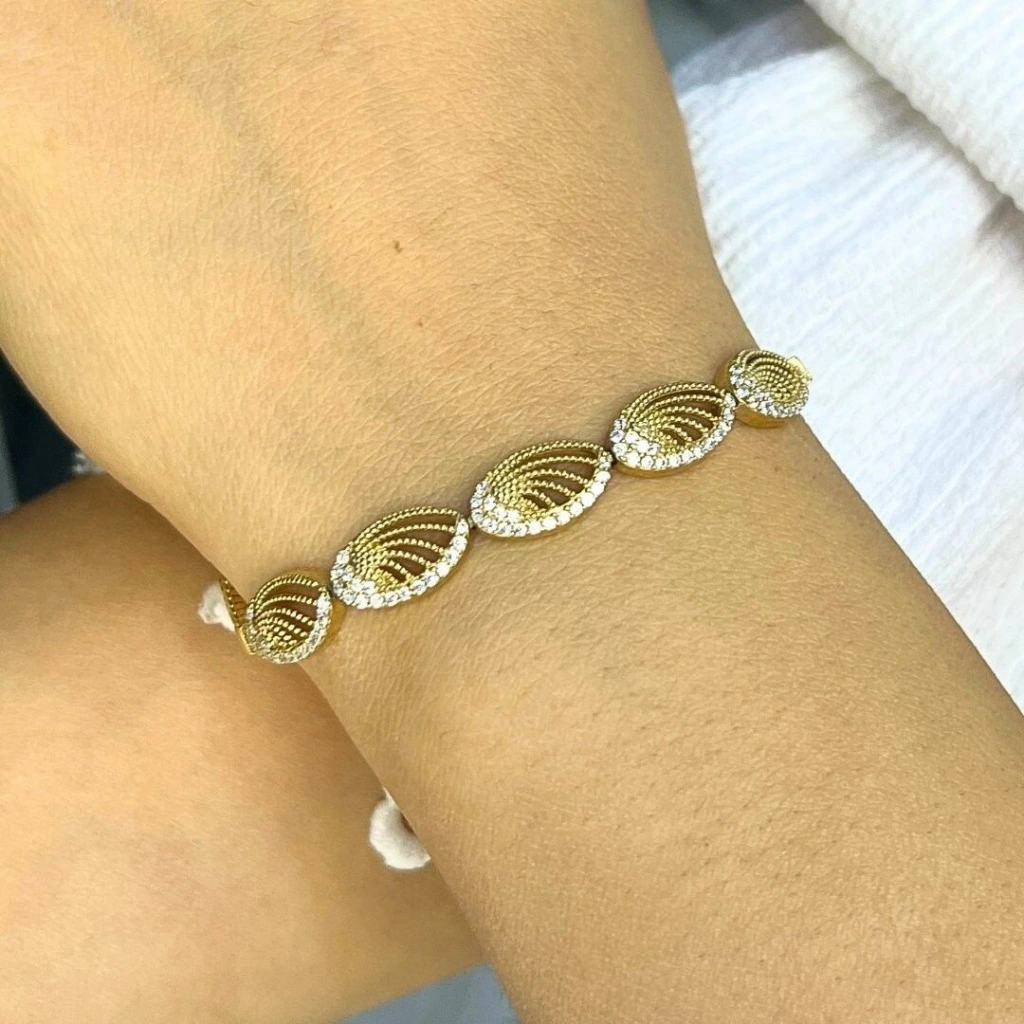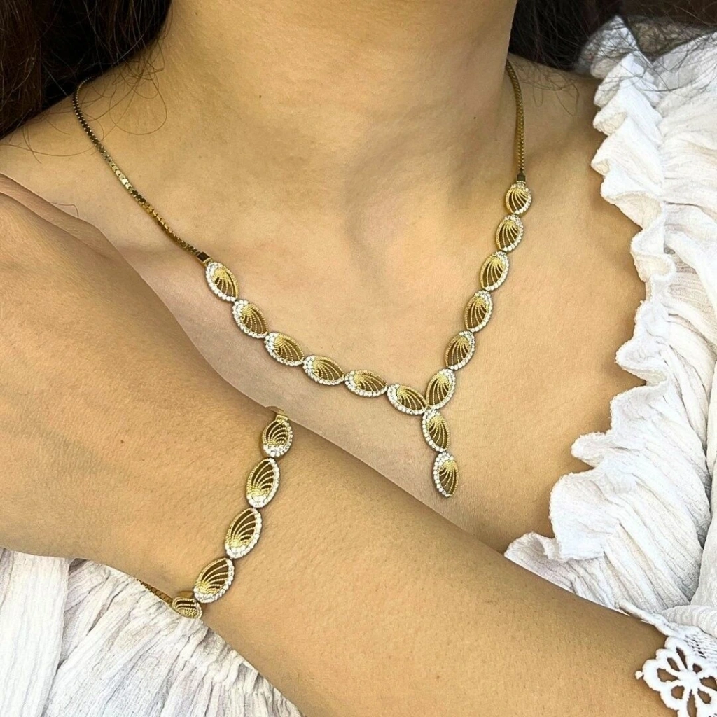 Bu 14 ayar altın düğün seti takımı, zarif ve şık bir tasarıma sahip olup, özel günlerde mükemmel bir seçimdir. Set, hem gelinler hem de davetliler için göz alıcı bir aksesuar sunar.