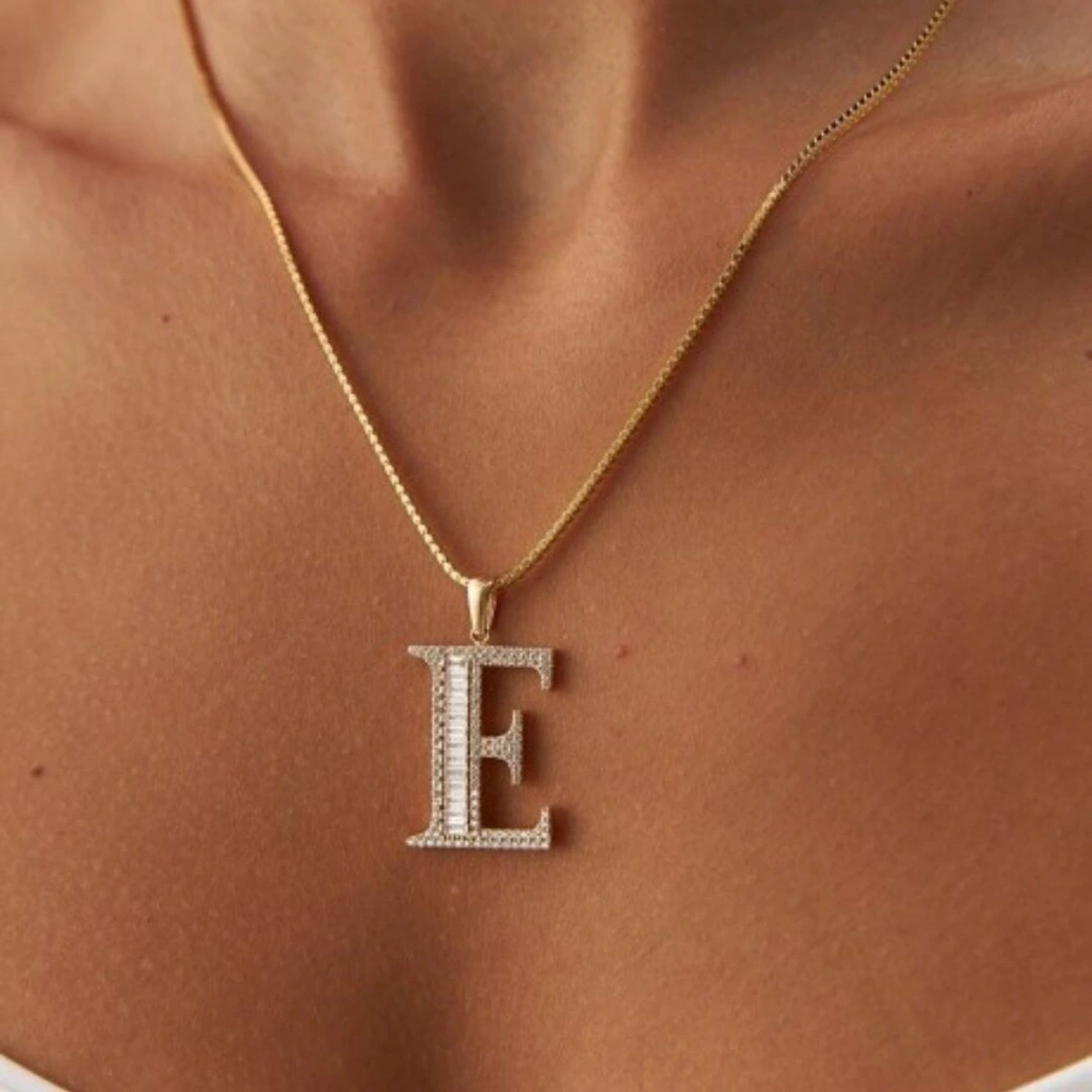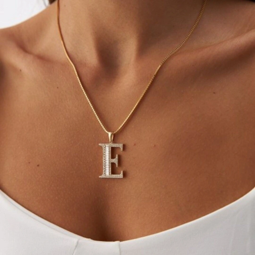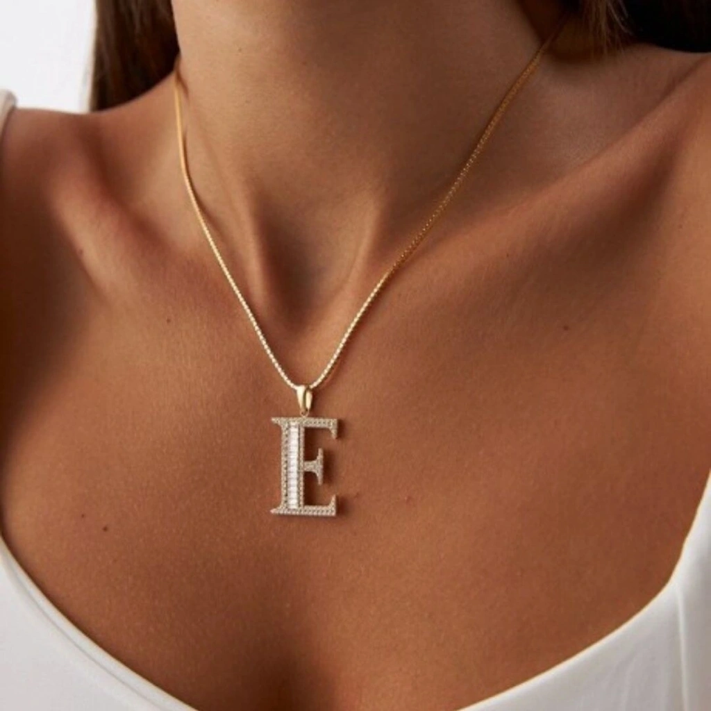 14 Ayar altın Ezme Küp Zincirli Taşlı Harf Kolye
