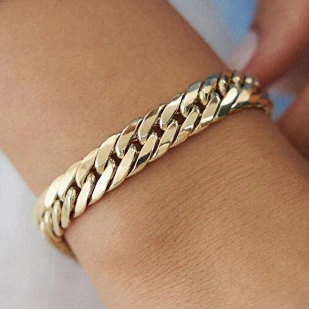 Sarı altının parlaklığıyla bütünleşen sade tasarımı, günlük kullanımdan özel günlere kadar her anınıza eşlik edecek zarif ve dayanıklı bir takı sunar. Taşsız yapısıyla sadeliği sevenler için ideal olan bu 14 Ayar Altın Gurmet Bileklik, hem tek başına hem de diğer bilekliklerle kombinlenmeye uygundur.