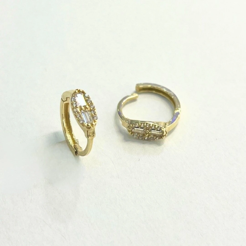 Bu 14 ayar altın halka baget küpe, zarif yapısıyla her anınıza sofistike bir dokunuş katacak ve stilinizi tamamlayacaktır.