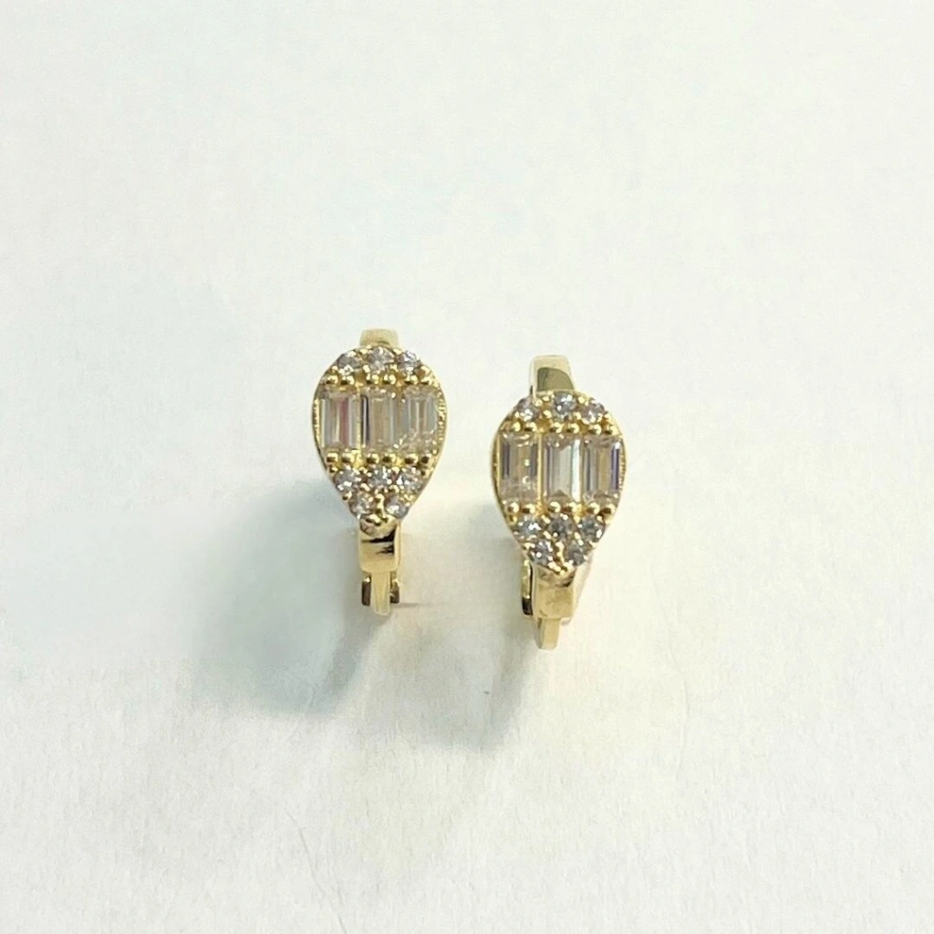 Bu 14 ayar damla baget küpe, özel davetler, iş toplantıları ve günlük şıklığınız için ideal bir tercihtir. Hem klasik hem de çağdaş kıyafetlerle mükemmel bir uyum sağlar, her anınıza ışıltı katacaktır.