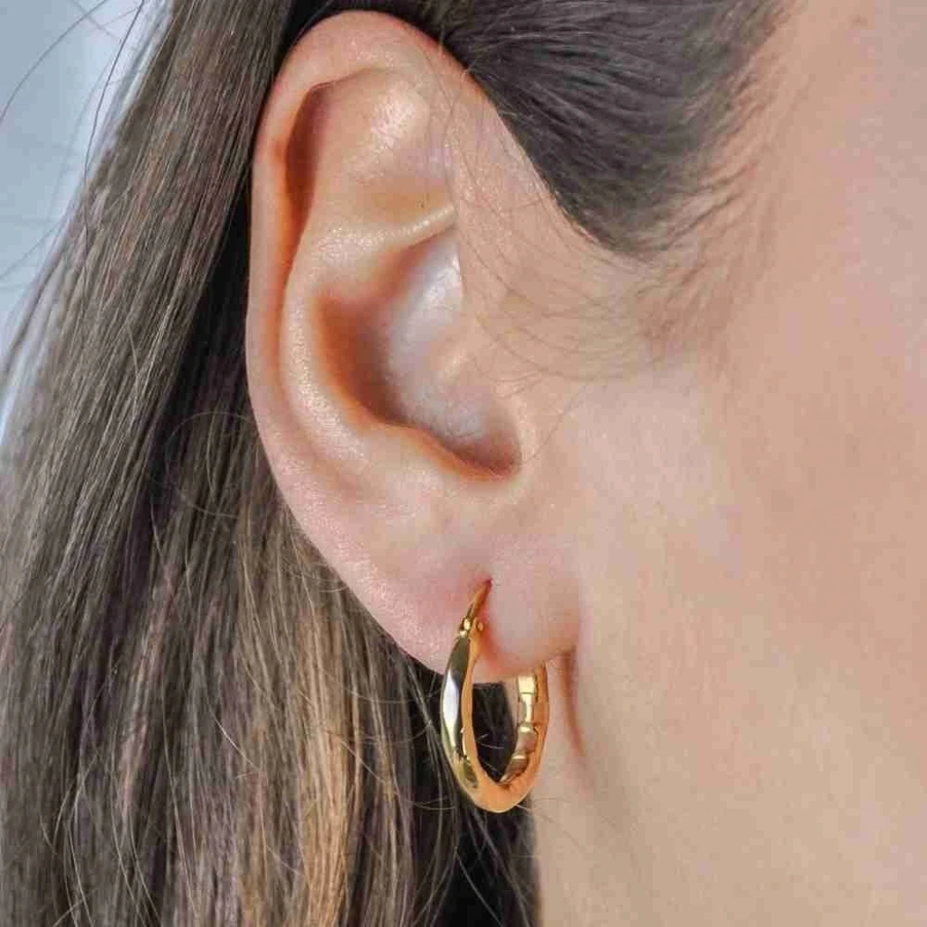 İçi şarnel halka modeli ile dikkat çeken küpe, zarif ve gösterişli bir görünüme sahip. Vidalı kapama özelliğine sahip küpe, kulakta sağlam bir duruş sergiliyor. Günlük kullanıma uygun olan küpe, uzun yıllar kullanabileceğiniz bir aksesuar.