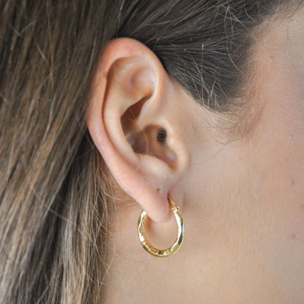 Ürün Açıklaması 14 Ayar Altın İçi Ezme Halka Küpe