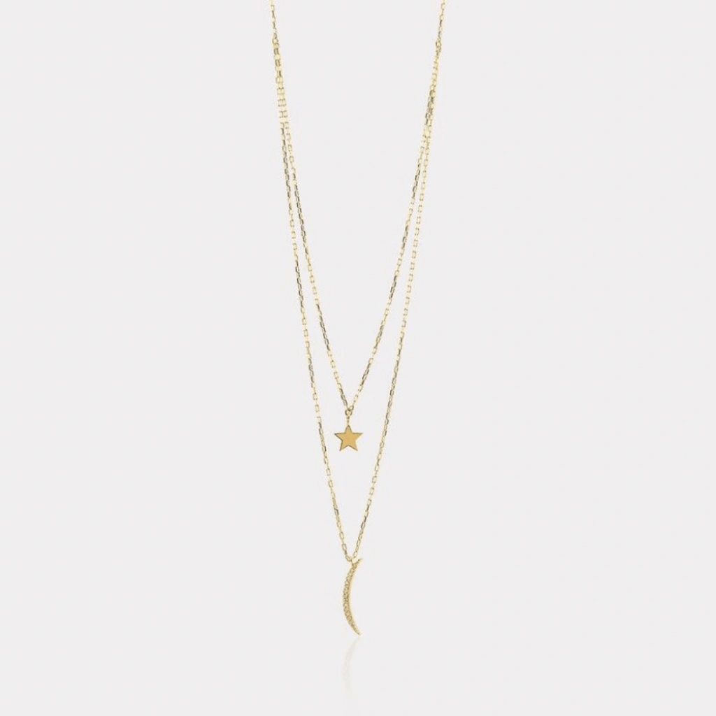 Evla Kuyumculuk 14 Ayar Altın İkili Ay Yıldız Kolye: 2,93 Gram
