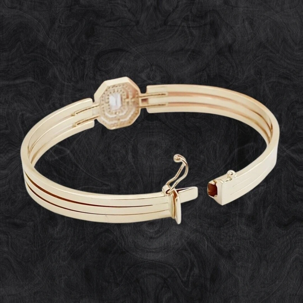 Şık ve modern bir tasarıma sahiptir. 14 ayar altın kullanılarak üretilen kelepçe. Bu da onu daha dayanıklı ve parlak bir seçenek haline getirir.