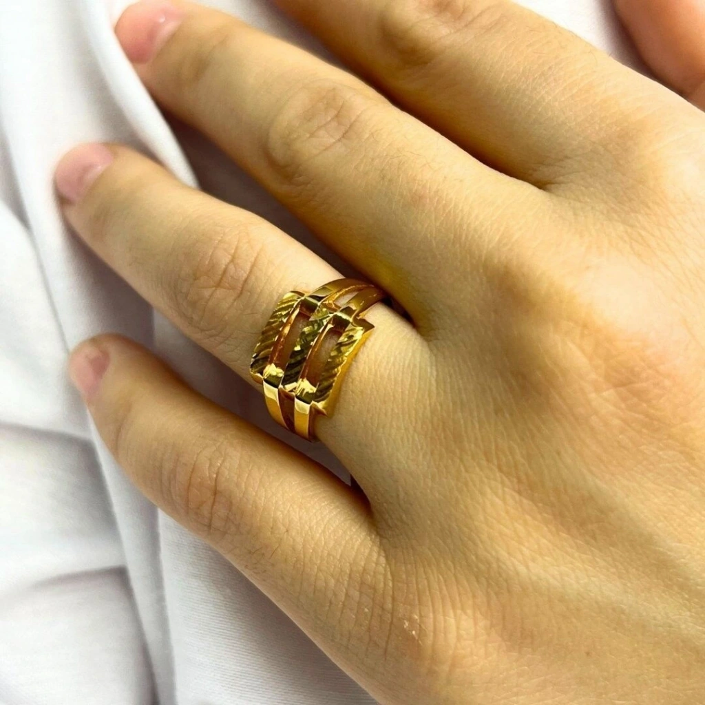 14 ayar altın kaburga yüzük, kaburga şeklindeki tasarımıyla öne çıkar. Yüzüğün katmanlı ve dalgalı yapısı, ona derinlik ve hacim kazandırırken altının parlaklığıyla şık ve cesur bir görünüm sunar. 2,52 gram ağırlığındaki bu yüzük, hem hafif hem de rahat bir kullanıma sahiptir.