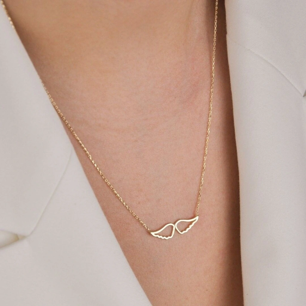 Evla Kuyumculuk,özgün ve şık tasarımlarıyla tanınan bir markadır. Bugün sizlere sunacağımız 14 Ayar Altın Kanat Kolye, hem zarif bir parça hem de etkileyici bir tasarıma sahiptir.
