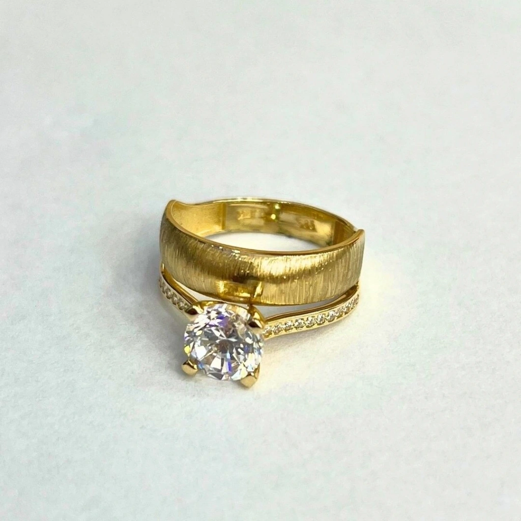 Bu yüzük, kaliteli 14 ayar altından üretilmiş olup, klasik bir tektaş detayına sahiptir.