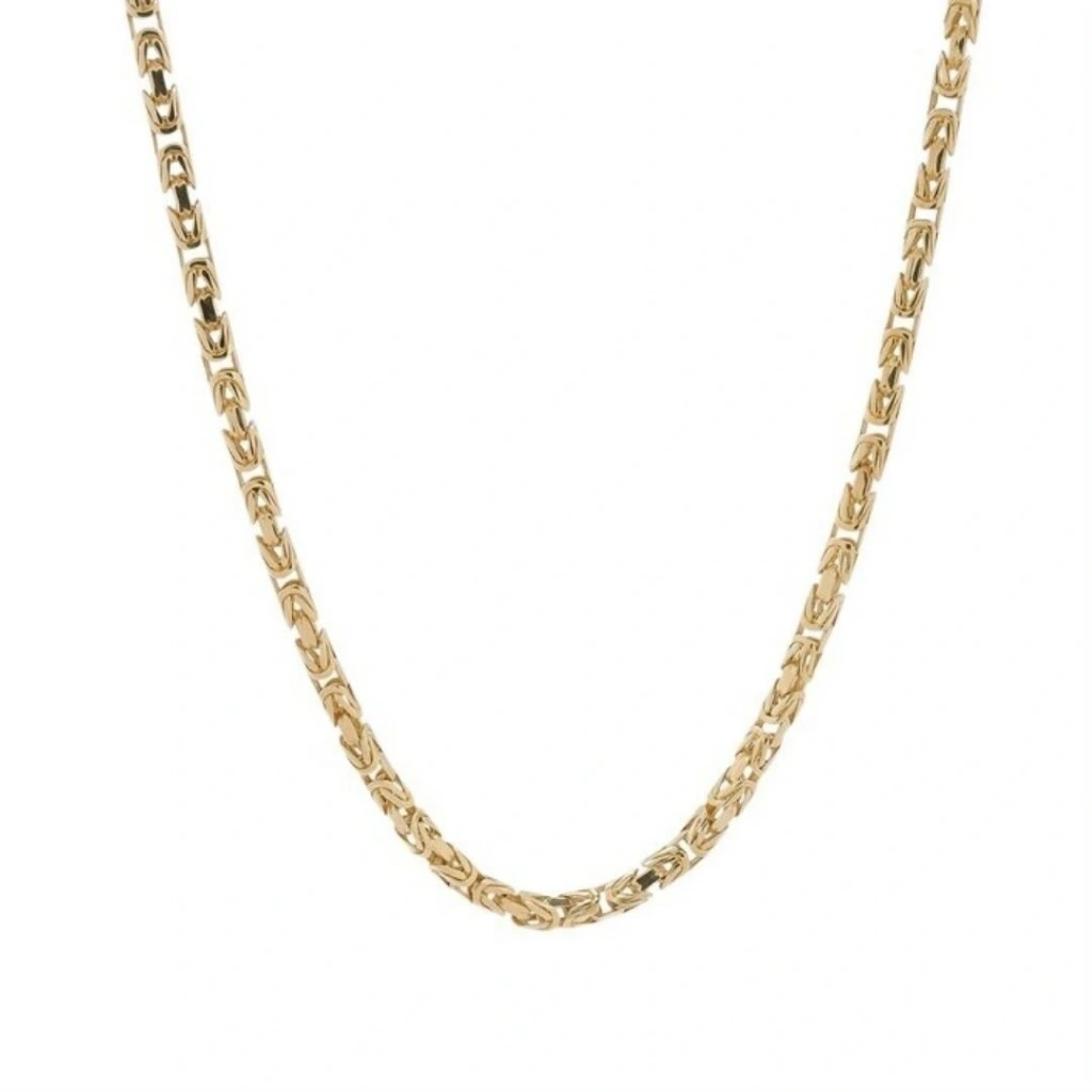 14 Ayar Altın Kral Zincir 28,43 Gram: Evla Kuyumculuk'un özel koleksiyonunda yer alan 14 Ayar Altın Kral Zincir, güçlü ve şık bir ifadeye sahip olan etkileyici bir parçadır. Bu zincir, yüksek kaliteli 14 ayar altın kullanılarak özenle tasarlanmış ve ustalar tarafından büyük bir özenle işlenmiştir. Kral zincirin sağlam ve dikkat çekici tasarımı, göz alıcı bir görünüm sunar. Altın zincir, özenle işlenmiş halkalarla bir araya getirilerek dayanıklılığını ve estetik görünümünü artırır. Zincirin her bir halkası, zarif bir şekilde birbirine bağlanmıştır, böylece güçlü bir duruş sergiler.