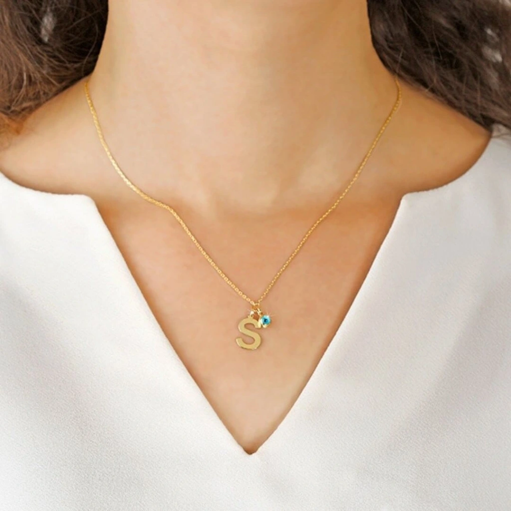 Evla Kuyumculuk 14 Ayar Altın Nazar Boncuklu Harf Kolye: 2,33 Gram