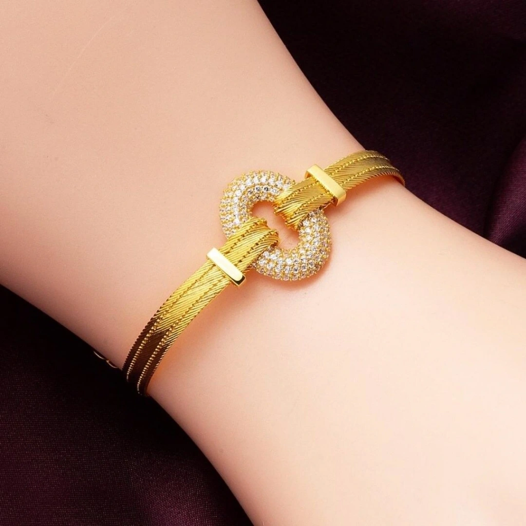 Hasır örgü tekniğiyle üretilmiş bu bileklik, klasik ve gösterişli bir stil sunarken, özel günlerde veya günlük kullanımda şıklığınızı tamamlayan eşsiz bir aksesuar olacaktır. Altının sıcak tonları ve ince işçiliğiyle göz alıcı bir tasarıma sahip olan bu bileklik, zamansız bir yatırım parçasıdır.
