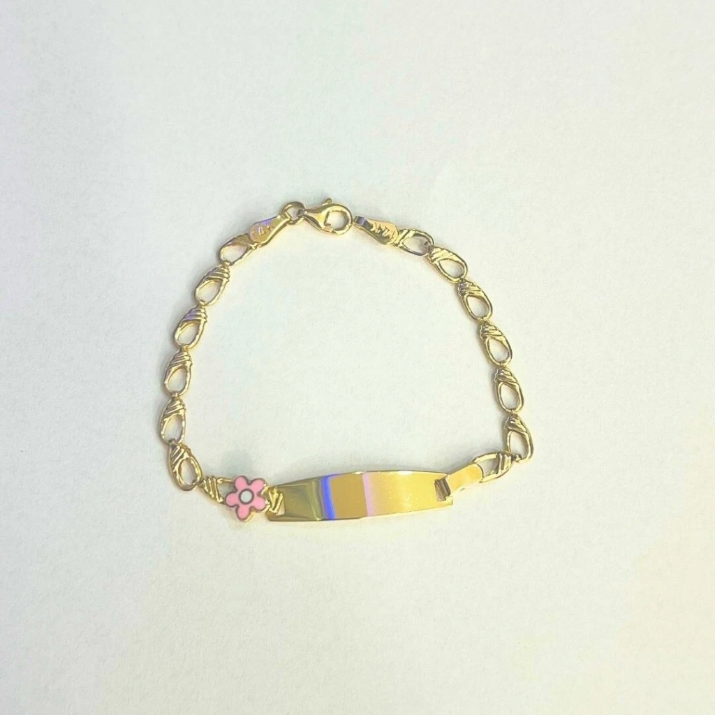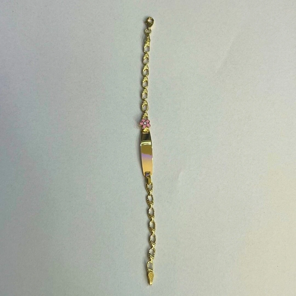 Bu 14 ayar altın çocuk bileklik, zarif ve şık bir görünüme sahiptir. Papatya motifi, bilekliğe hoş ve sevimli bir görünüm katar.