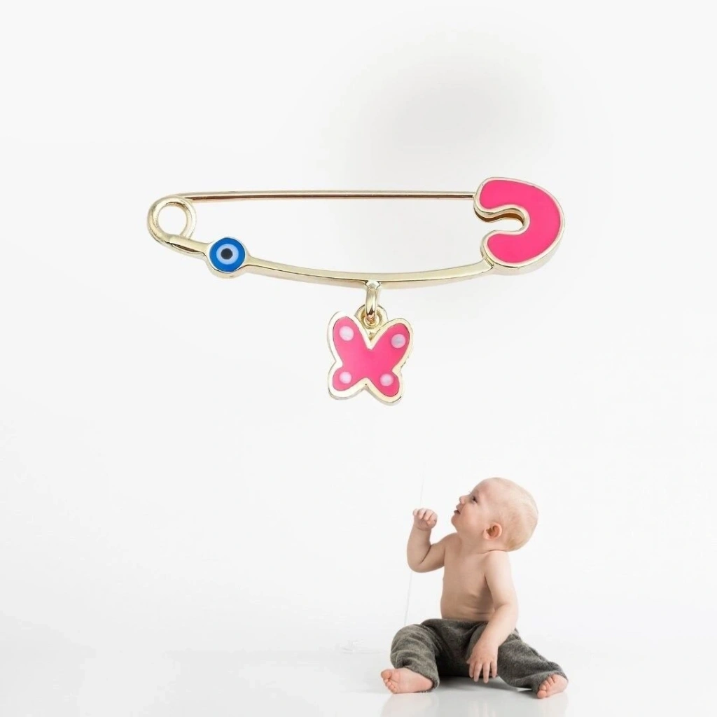 14 Ayar Altın Pembe Kelebek Bebek İğnesi