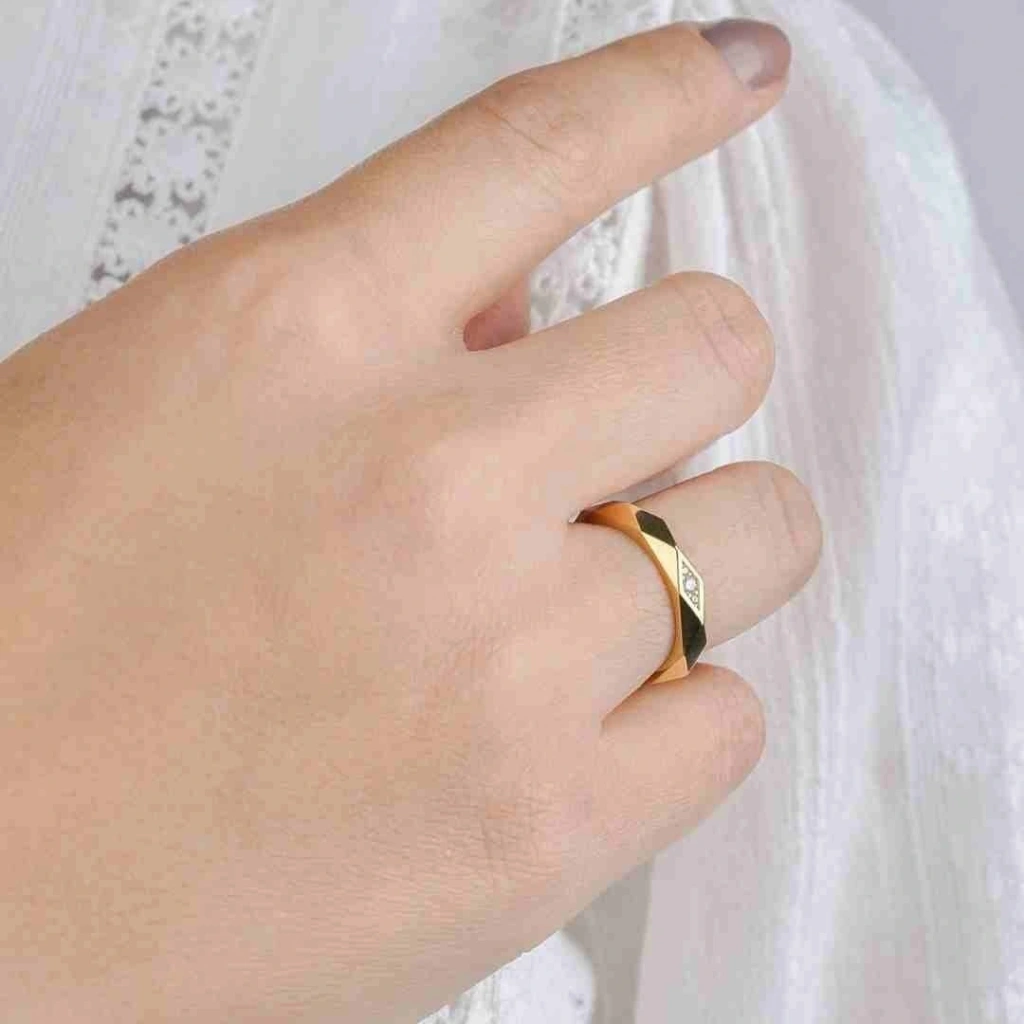 Tasarım: Piramit şeklindeki detayıyla dikkat çeken bu yüzük, modern ve şık bir görünüm sunar. Piramit detayı, yüzüğe benzersiz bir dokunuş katar ve tarzınızı vurgular.