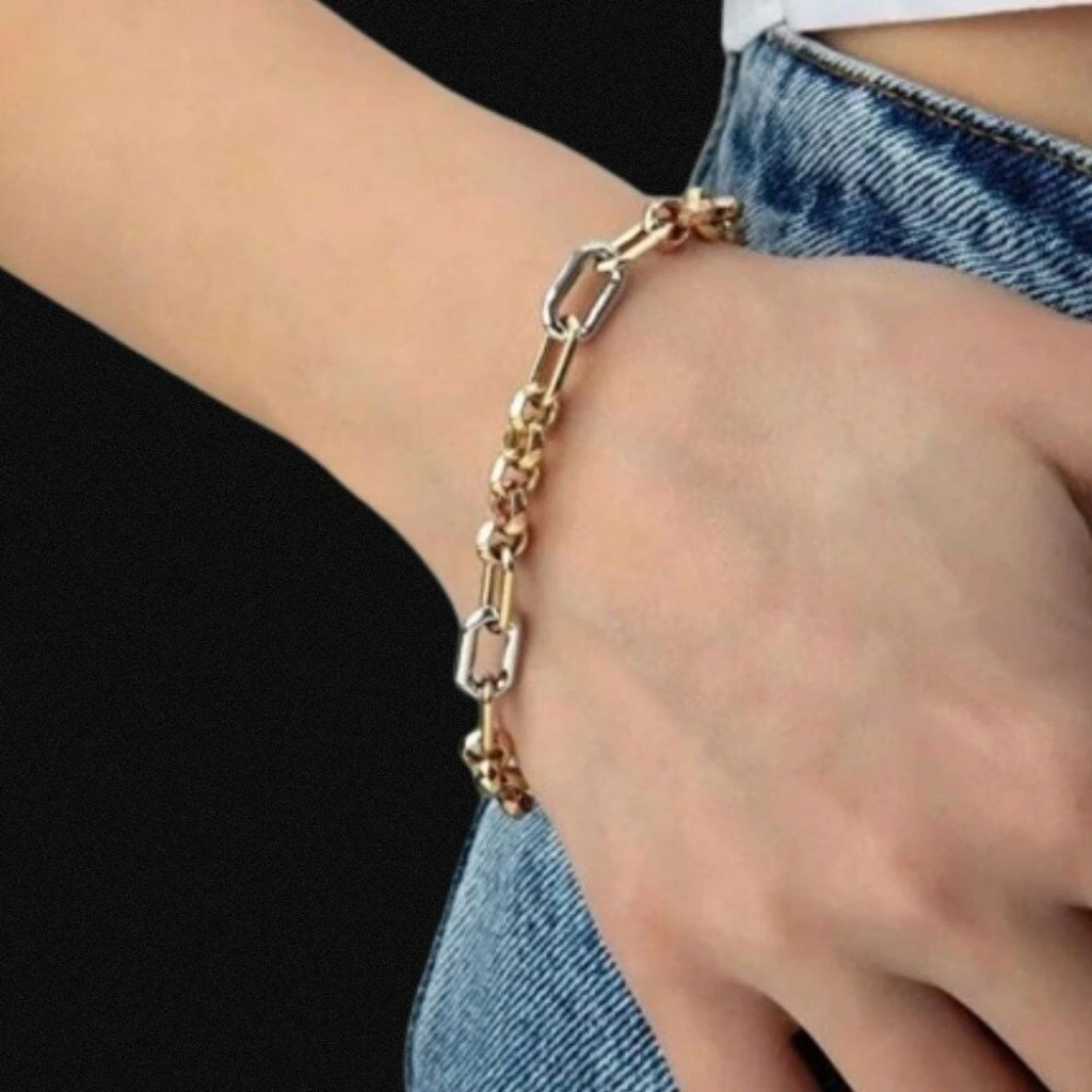 14 Ayar Altın Renkli Hallow Bileklik 4,21 Gram: Evla Kuyumculuk'un 14 Ayar Altın Renkli Hallow Bileklik ürünü, şıklığı ve canlılığı bir arada sunan özel bir mücevherdir. Bu bileklik, yüksek kaliteli 14 ayar altın malzemeden üretilmiştir ve 4,21 gram ağırlığındadır. Renkli hallow bilekliğin zarif tasarımı, bileğinizi göz alıcı bir şekilde süsler. Altın zincir üzerine yerleştirilen renkli taşlar, bilekliğe canlılık katar. Her bir taş, özenle seçilmiştir ve bilekliği daha da çekici hale getirir. Bu bileklik, stilinize renkli bir dokunuş ve enerji katmak için ideal bir seçenektir.
