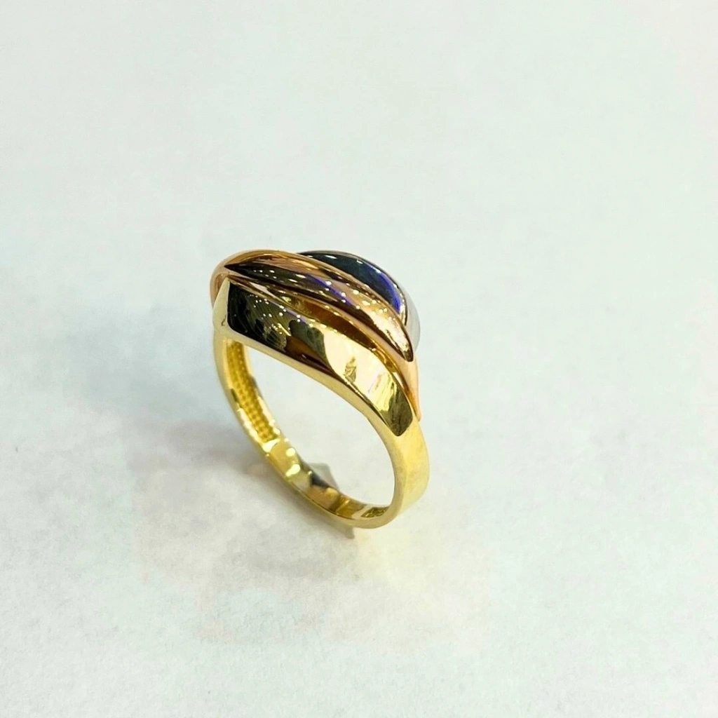 Yüzüğün sade tasarımı, renkli altın detaylarıyla zenginleştirilmiştir ve minimalist bir estetik sunar.