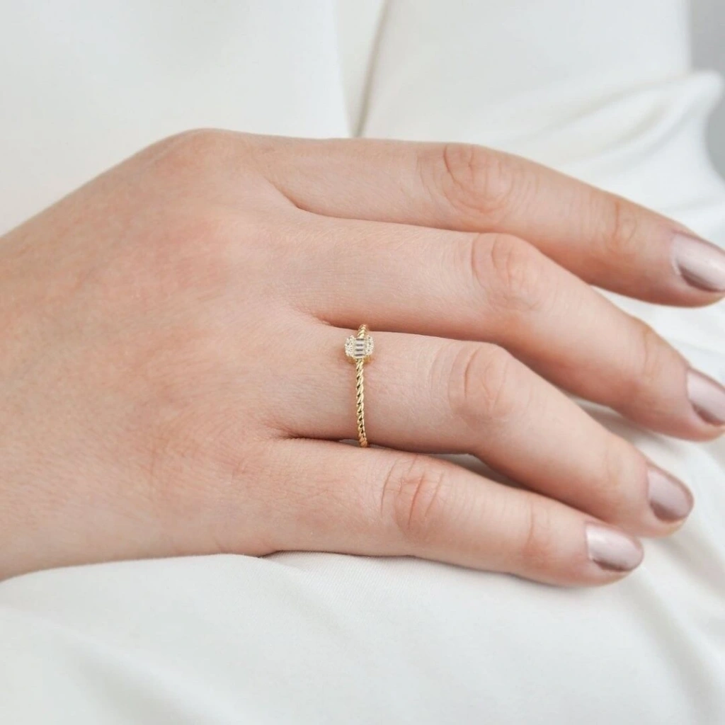 Bu özel yüzük, 1,28 gram ağırlığındaki 14 ayar altın ile üretilmiştir. Altının parlak ve zengin görünümü, yüzüğün estetik cazibesini artırırken, hafif yapısı da konforlu bir kullanım sağlar. Sarmal 14 Ayar Altın Sarmal Baget Yüzük, şıklığı ve modernliği birleştiren özel bir tasarıma sahiptir. Yüzüğün sarmal şeklindeki yapısı, benzersiz bir görünüm sunar ve parmakta zarif bir şekilde durur. Bu yüzük, her adımda tarzınızı ve stilinizi vurgular.