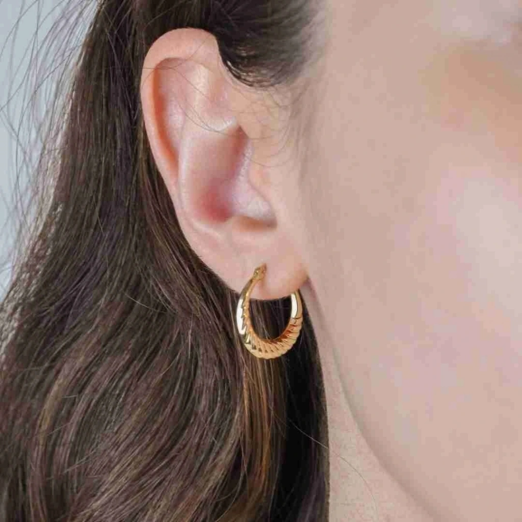 14 Ayar Altın Sarmal Halka Küpe 1,15 Gram: 14 Ayar Altın Sarmal Halka Küpe, zarif ve şık bir mücevherdir. Bu özel tasarım, özenle seçilmiş 14 ayar altın ile yapılmıştır ve 1,15 gram ağırlığındadır. Bu halka küpe, sarmal detaylarıyla dikkat çekmektedir. Sarmal şekilleri, küpenin yüzeyinde estetik bir desen oluşturur ve hareketli bir görünüm kazandırır. Bu tasarım, küpeye modern bir dokunuş katarak tarzınızı vurgular.