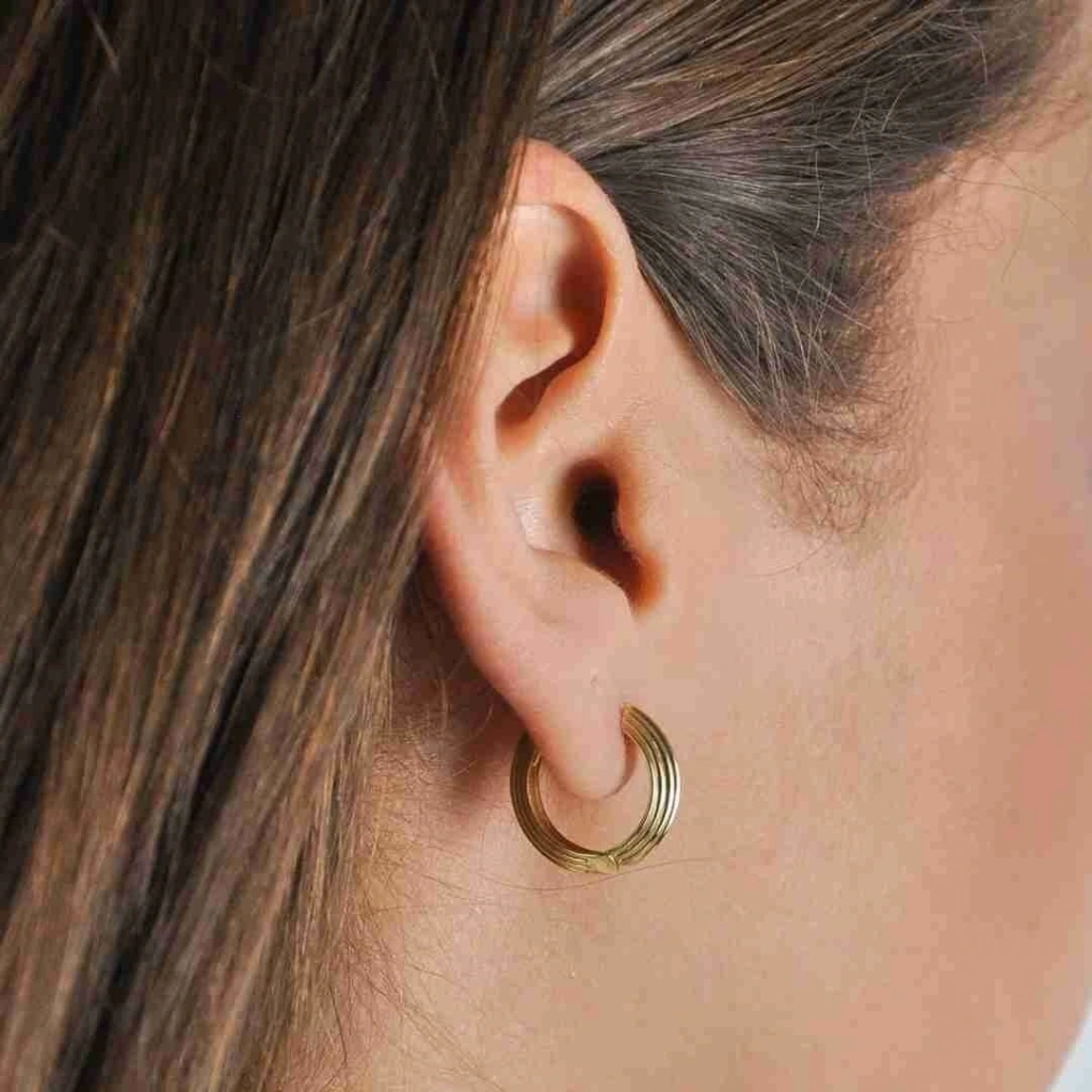 Küpe, günlük kullanım için idealdir. Spor ve klasik tarz kıyafetlerle uyum sağlayabilir.
