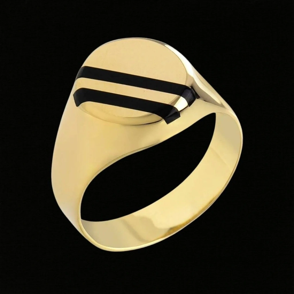 14 Ayar Altın Siyah Çift Şerit Erkek Yüzüğü