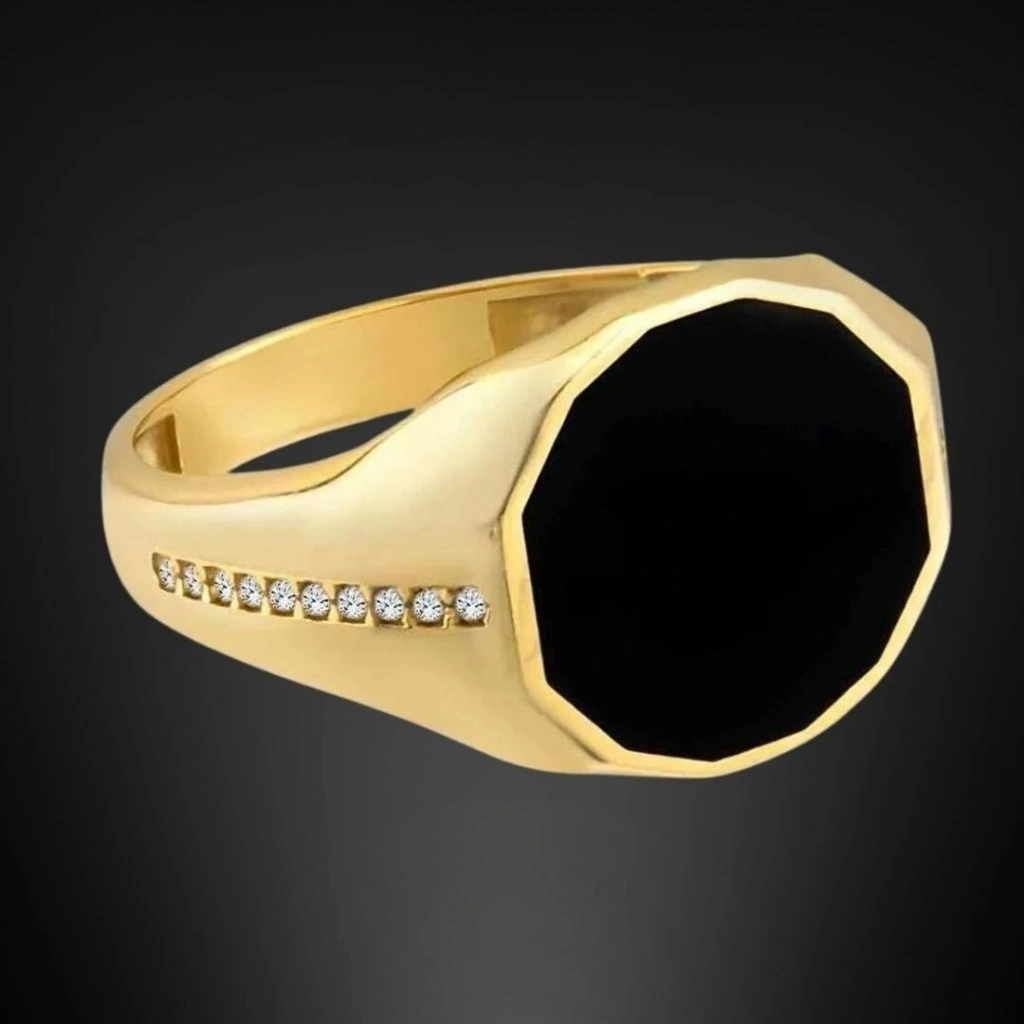 14 Ayar Altın Siyah Mühür Erkek Yüzüğü 4,50 Gram : Bu 14 Ayar Altın Siyah Mühür Erkek Yüzüğü, Evla Kuyumculuk tarafından özenle tasarlanmış ve üretilmiş bir mücevherat ürünüdür. Kaliteli malzemeler ve dikkatli işçilikle yapılan bu yüzük, güçlü ve göz alıcı bir görünüme sahiptir. Yüzüğün yapımında 14 ayar altın kullanılmış olup, toplamda 4,50 gram ağırlığındadır. Yüzüğün tasarımında siyah mühür detayları kullanılarak benzersiz bir estetik yakalanmıştır. Altın rengi ve siyahın kontrastı, yüzüğe modern ve sofistike bir hava katarak dikkat çekici bir görünüm sunar.