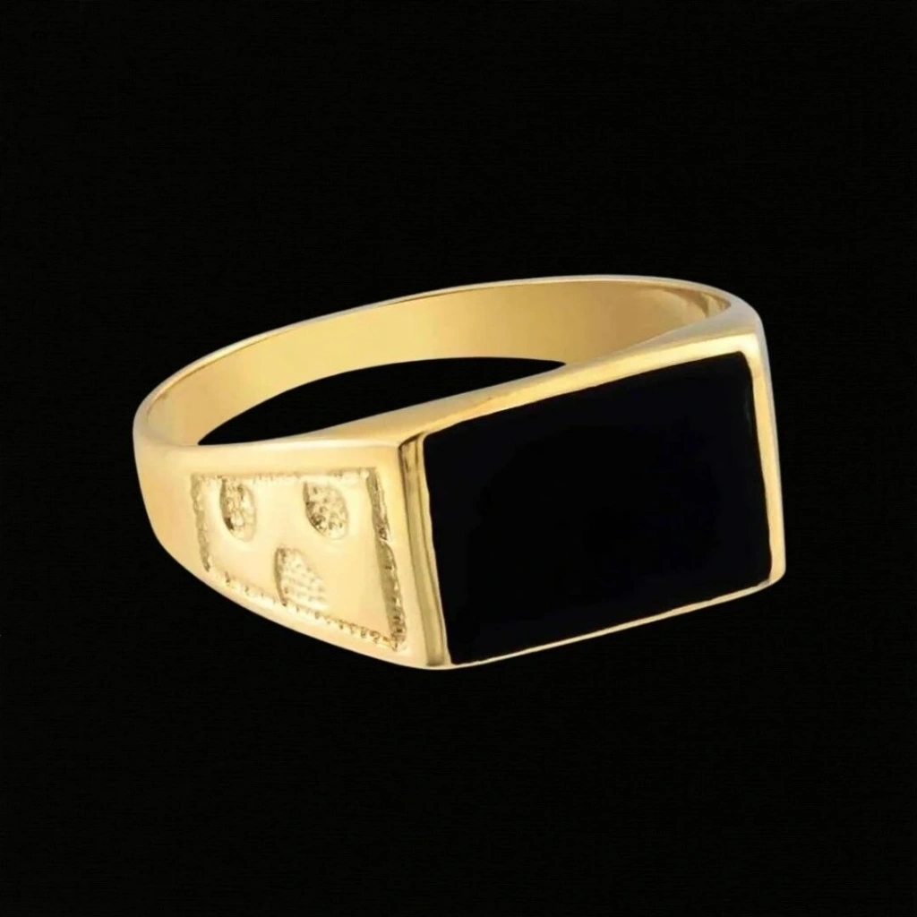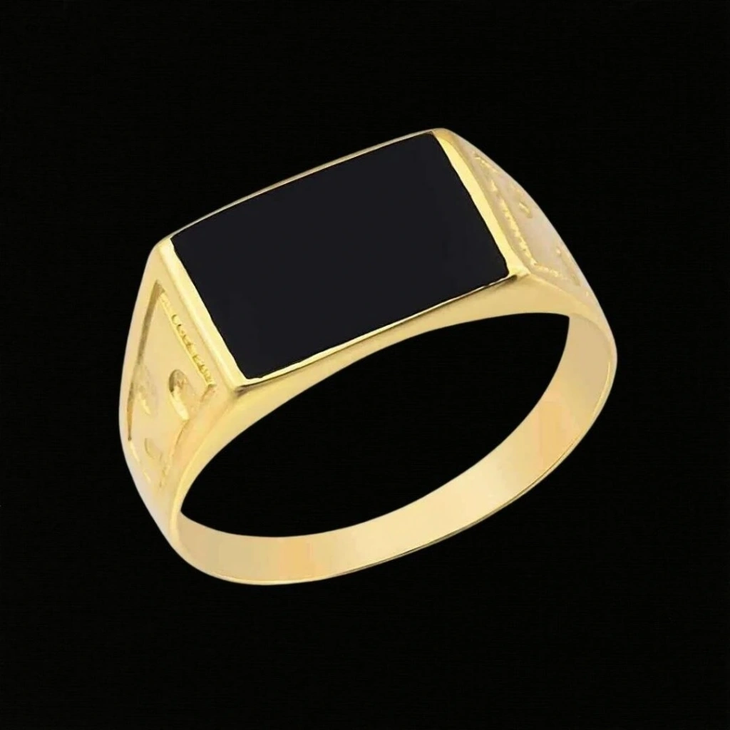 14 Ayar Altın Siyah Taşlı Erkek Yüzüğü 4,72 Gram : Bu 14 Ayar Altın Siyah Taşlı Erkek Yüzüğü, Evla Kuyumculuk tarafından özenle tasarlanmış ve üretilmiş bir mücevherat ürünüdür. Yüksek kaliteli malzemeler ve dikkatli işçilikle yapılan bu yüzük, şık ve etkileyici bir görünüme sahiptir. Yüzüğün yapımında 14 ayar altın kullanılmış olup, toplamda 4,72 gram ağırlığındadır. Yüzüğün tasarımında siyah taşlar kullanılarak benzersiz bir estetik yakalanmıştır. Siyah taşlar, yüzüğe modern ve sofistike bir dokunuş katar.