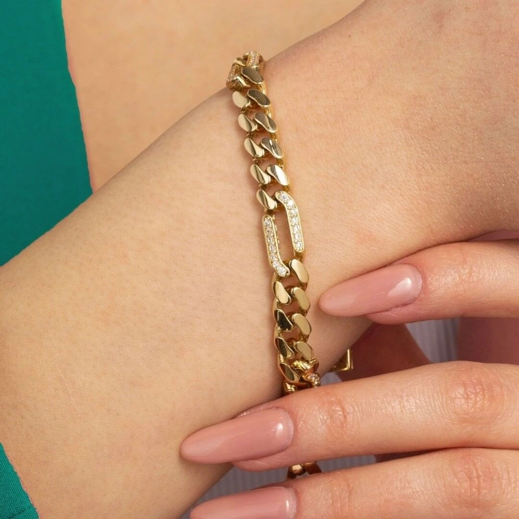 14 Ayar Altın Taşlı Gurmet Zincir Bileklik