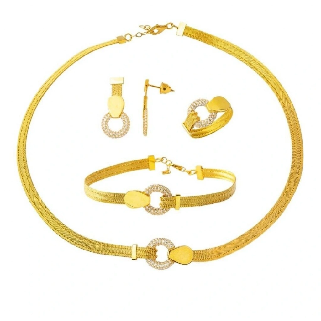 14 Ayar Altın Taşlı Trabzon Hasır Set Takımı 27,50 Gram: