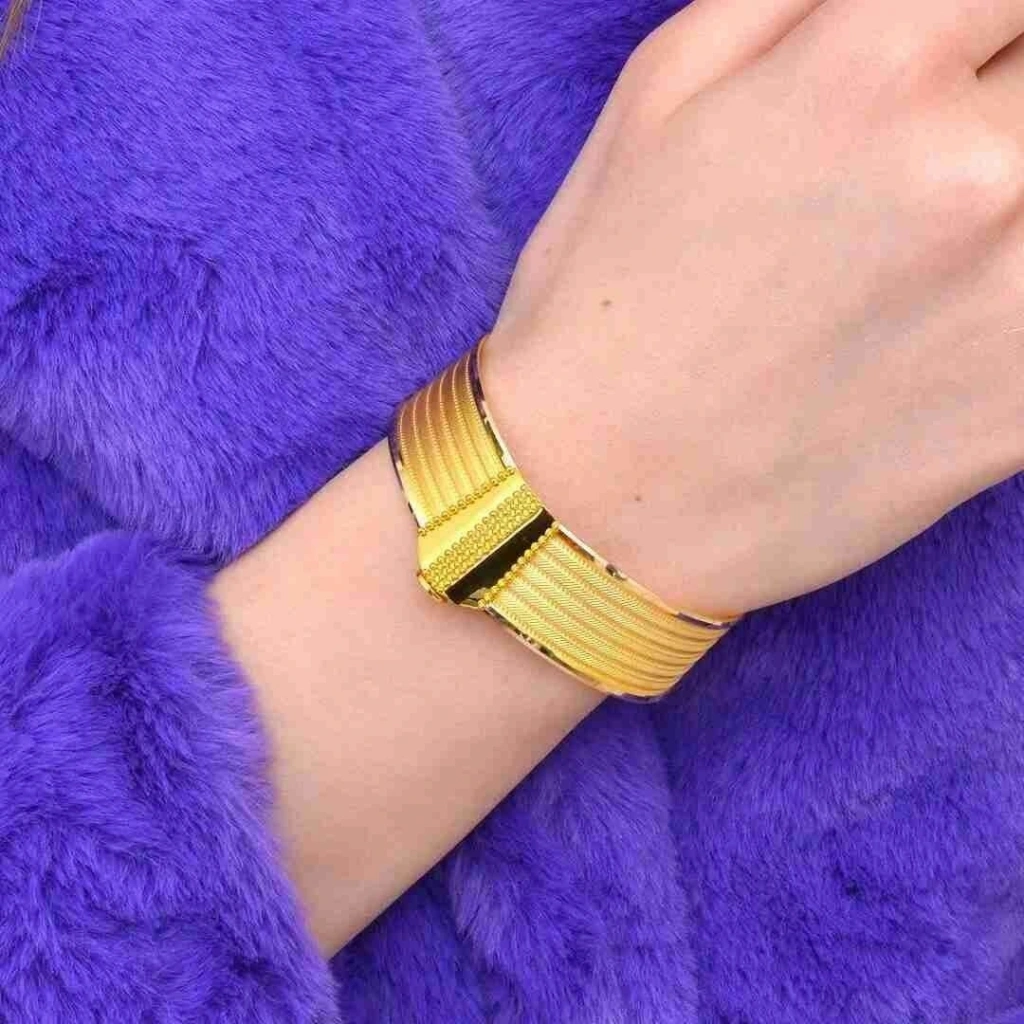 Evla Kuyumculuk'un özel koleksiyonundan 14 Ayar Altın Trabzon Hasır Kelepçe, göz alıcı ve zarif bir kuyumculuk ürünüdür. Bu kelepçe, yüksek kaliteli 14 ayar altın kullanılarak özenle tasarlanmıştır . Trabzon hasır deseniyle süslenen bu kelepçe, benzersiz bir görünüm sunar ve her türlü kıyafetle mükemmel bir uyum sağlar. Bu özel kelepçe, 18,31 gram ağırlığıyla sağlam ve gösterişli bir yapıya sahiptir. Bu sayede bileğinizi etkileyici bir şekilde süsler ve şıklığınızı vurgular. Trabzon hasır deseni, kelepçenin üzerindeki örgü detaylarıyla birleşerek göz alıcı bir etki yaratır.