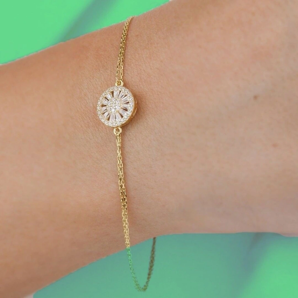 Evla Kuyumculuk'un zarif ve özgün tasarımlarından biri olan 14 Ayar Altın Trapez Zincirli Bileklik, şıklık ve zarafeti bir arada sunan bir parçadır. Bu özel bileklik, 1,75 gram ağırlığındaki 14 ayar altınla özenle işlenmiştir. Bilekliğin trapez zincirli tasarımı, modern ve trendi bir görünüm sağlarken, altının parlaklığı da dikkatleri üzerine çekmektedir. Evla Kuyumculuk, bu bilekliği özgün bir şekilde tasarlamış ve her ayrıntısına özen göstermiştir.